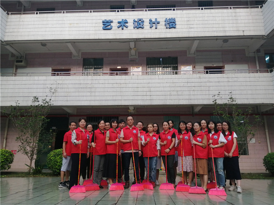 10月24日下午,艺术设计学院教工党支部在艺术楼广场开展主题为“党员奉献展风采,义务劳动树旗帜”的清洁艺术楼志愿服务活动。艺术设计学院党总支书记欧莹和全体教工党员积极踊跃地参与到该次活动中。