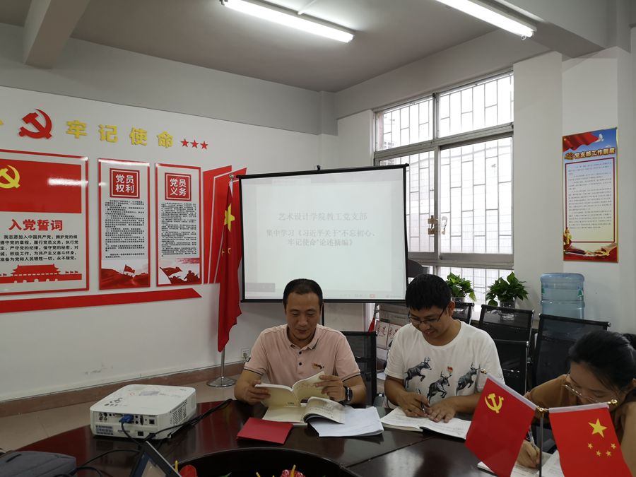 近日,艺术设计学院教工党支部在艺术楼105党员活动室开展“不忘初心,牢记使命”主题教育,集中学习《习近平关于“不忘初心、牢记使命”论述摘篇》。全体教工党员参与活动,认真学习。会议由艺术设计学院教工党支部书记吴福珍主持。