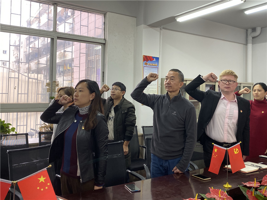 本次会议严格贯彻落实《中共中央关于加强党的政治建设的意见》,艺术设计学院教工党支部结合支部的工作安排进行本次党日活动。会上,吴福珍向全体党员说明了每位党员加入组织,不仅在于获得一个身份,而且是获得一份持续终身的信仰,更是赋予了党员的第二次生命,“政治生日”是党员个体的政治“成人日”。过“政治生日”就是为了校准目标、方向、理想,更好地做到不忘初心、牢记使命,更好地坚定信仰、继续前行,更好地永葆先进性、纯洁性。12位党员分别向全体党员分享他们的初心和入党时的难忘故事。吴福珍为11月、12月和1月过“政治生日”的罗靖、蒲艳、蔡金丹、李斯、寇昊、黄艳、薛志慧、梁潆予、张浩、吴顺利、伍峙霖、罗冠章12位同志赠予政治生日贺卡,并为他们送上生日赠言。12位党员带领全体党员重温入党誓词使党员时刻牢记自己的身份,不忘入党初心,做一名称职的、合格的,无悔于党员称号、无悔于入党誓词的共产党员。