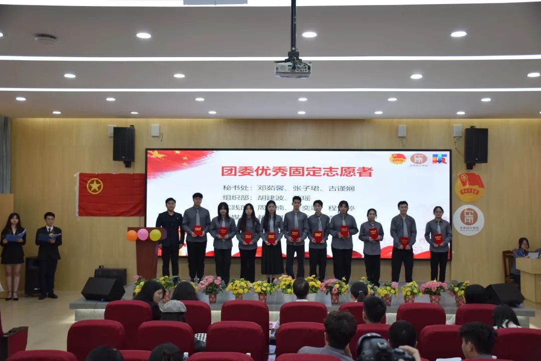 会议伴随着《光荣啊,中国共青团》团歌拉开了序幕。现场通过视频和心得分享回顾了上任团学学生工作人员的点滴,诚挚寄语了新成员们。