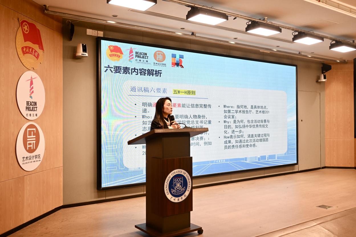为强化团学骨干责任担当,提升艺术特色工作履职能力,为了全面增强揽星学生骨干的综合素质,星轨计划培养一支既具备扎实专业素养、又擅长沟通协作,同时能够熟练运用演讲技巧、精通办公技能的学生骨干队伍。广州商学院艺术设计学院“星轨计划”揽星班秋季骨干培训会广州商学院艺术设计学院团委学生会于2025年12月23至-24日在第八教学楼203、204开展了秋季骨干培训会。广州商学院艺术设计学院团委学生会全体成员参与本次培训会学习,广州商学院由艺术设计学院党总支书记董志康书记、团委指导老师兼23级辅导员吴顺利、学生会指导老师兼24级辅导员郑颖超、24级辅导员蓝喜主讲,培训由艺术设计学院学生会文艺部固定志愿者梁嫚殷主持。