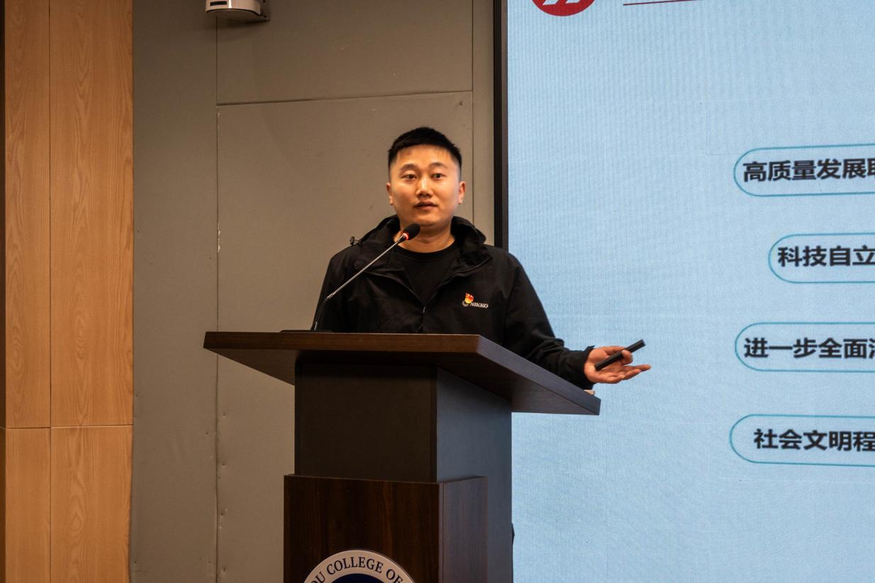 第一议题学习聚焦“十五五”规划核心内涵,以“中国式现代化推进高质量发展”为核心主线,深入解读规划中“科技自立自强”“新质生产力”“文化创新”等关键要点。吴顺利结合青年学生成长实际,引导青年骨干们深刻认识“十五五”时期的时代机遇与青年责任,鼓励大家将个人发展与国家建设、学院发展紧密结合,在团学工作中践行初心,在服务他人中实现自我价值。