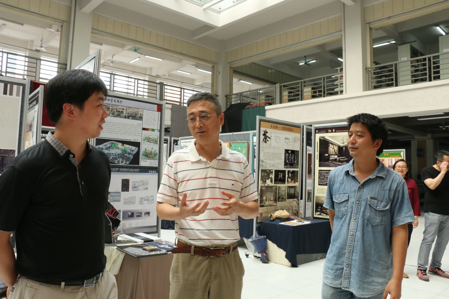 贺锋林(中)等人一行参观我校艺术设计学院2017届毕业设计作品展