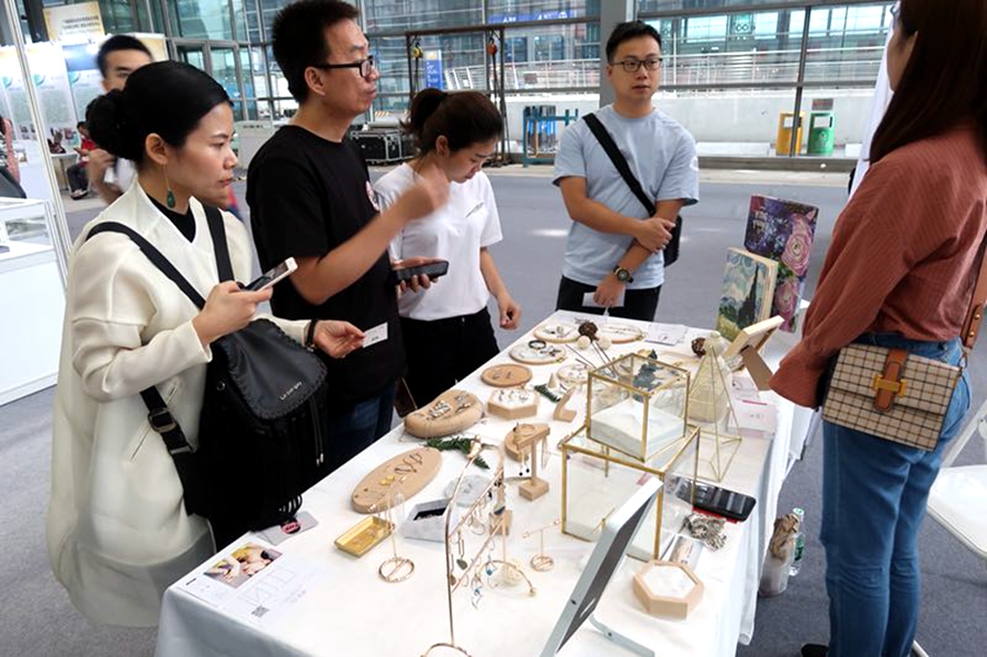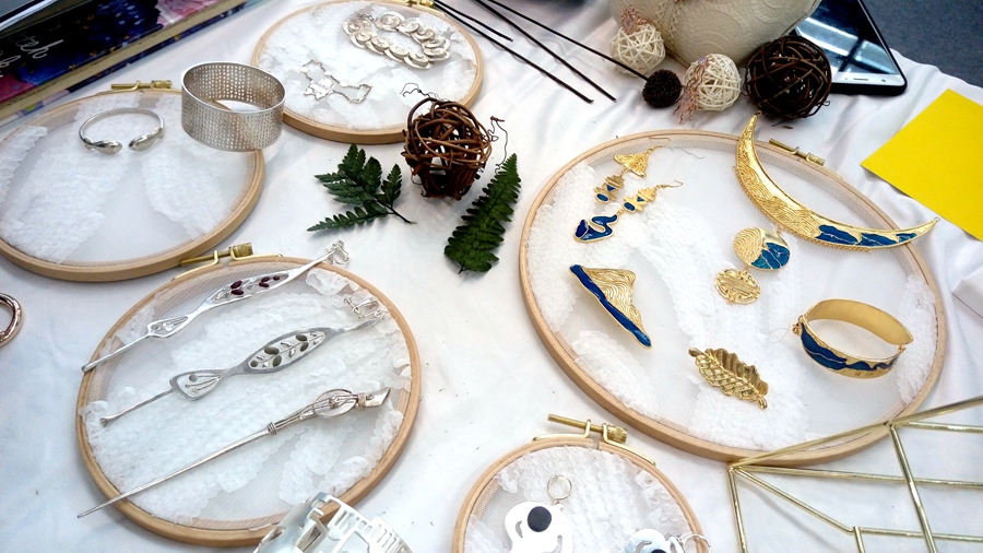 艺术设计学院师生作品于高校展区展出,独特的创意吸引了众多企业、商会、买手以及消费者围观。十余家企业抛出橄榄枝,希望与学院建立校企合作关系,从学校汲取更多的新鲜创意,同时提供更大更好的平台给艺术设计学院的学生;许多买手和消费者也对学院学生的作品十分感兴趣,提出定制的需要。与此同时,大家也针对本次展出的首饰产品从市场性、工艺性和设计性方面给予了宝贵的意见和建议。展会结束之后,参展师生将对收集的建议与意见进行整理提炼,以便更好的开展设计教学与创新创业工作。