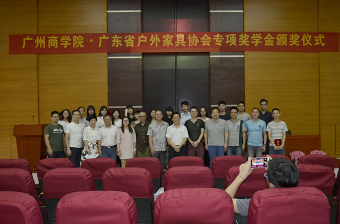 5月12日下午,艺术设计学院在图书馆报告厅举行了“广州商学院•广东省户外家具协会专项奖学金颁奖仪式”。我校副校长刘根正,校长助理兼教务处处长贺浪萍,艺术设计学院院长缪鹏、副院长谭杉,广东省户外家具协会秘书长熊小玲,佛山市亚太家私有限公司总经理梁宇鹏,藤话故事家具有限公司总经理朱亚东,东莞市嘉鹏金属制品有限公司总经理李军及艺术设计学院部分教师参加了此次颁奖仪式。艺术设计学院党总支书记欧莹主持了颁奖典礼。