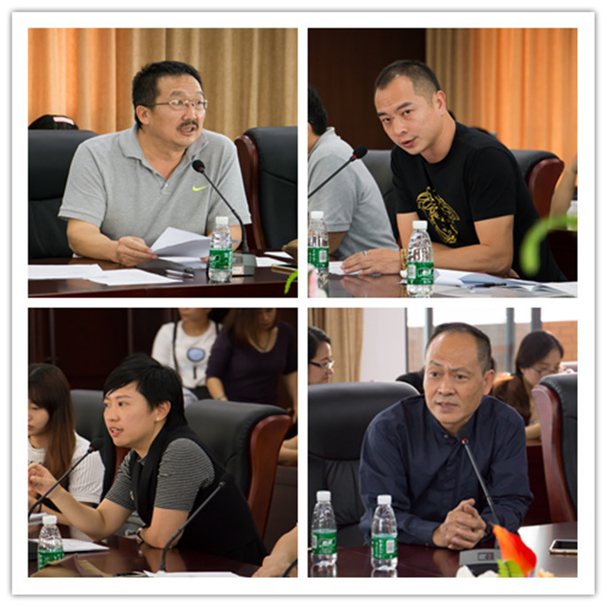 艺术设计学院院长缪鹏(左上)、副院长谭杉(右上)、党总支书记欧莹(左下)、学科带头人黎志伟教授(右下)分别发言