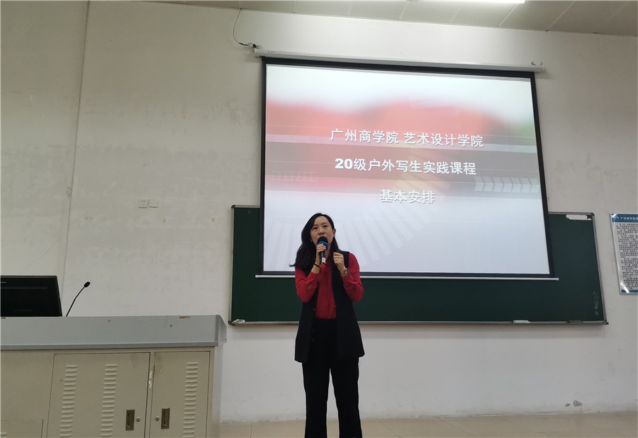 赖伟成从日程计划、住宿安排、安全注意事项以及写生要求等方面全面介绍了本次阳江外出写生实践教学活动。他特别强调:第一、根据专业任课老师要求,准备好写生的工具以及必备的生活用品;第二、再次明确防疫要求,写生期间全体师生需要佩戴口罩,做好个人防疫防护;第三、自觉遵守学院及写生基地的各项规章制度,尊重当地风俗,避免与陌生人发生任何形式的冲突。第四、端正态度,正确理解写生的意义。挥笔画山水,深情绘美景,深入大自然,善于发现自然的美感,结合自身理论知识,深入学习,提升自我,从而创作出更多优秀的作品。