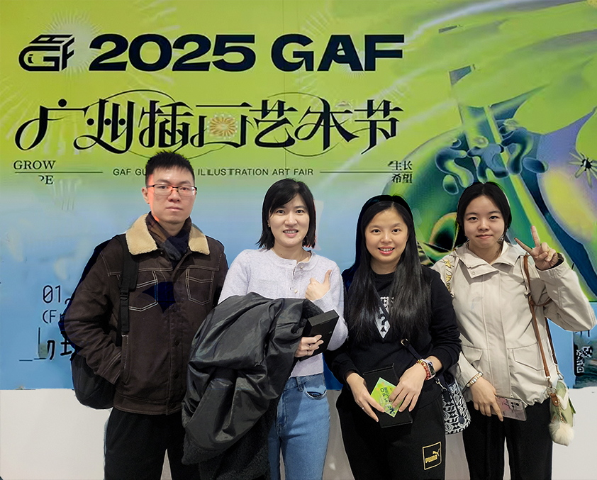 为丰富教师的文化艺术素养,提升艺术教育的创新能力,2025年1月5日 ,艺术设计学院视觉传达设计专业一行前往保利世贸博览馆参观由广州市文学艺术界联合会指导,广州插画艺术文化有限公司(GAF)主办的“2025GAF广州插画艺术节”,本次活动吸引了众多艺术爱好者、插画师以及市民前来参观,共同感受插画艺术的独特魅力。视觉传达设计教研室主任罗靖、副教授曾小兰、专任教师梅秉峰、专任教师卢晓瑶等出席了本次活动。