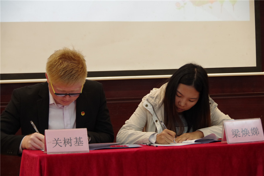 黄晓嬙、李锦堂、欧莹共同为服务队揭牌,黄晓嬙向我院志愿者服务队授旗。神圣的志愿者旗帜在第一报告厅飘扬,意味着又一支朝气蓬勃的生力军应运而生,同时象征着艺术设计学院志愿服务工作有了里程碑式突破。梁焕娣代表黄埔区社会组织联合会、关树基代表艺术设计学院团委,双方现场签订志愿服务合作协议,主要围绕九龙片区青少年成长导师计划、小金雁430课堂、九龙镇禁毒宣传、共建广商艺术设计学院社会实践基地、合作开展贵州省黔南州三下乡社会实践活动等方面展开深度合作。
