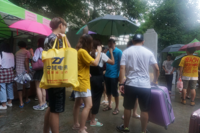 迎新团队分时段上岗,各司其职,按班次配合默契,井然有序。黄色手环是艺术设计学院志愿者独有的标记,代表着阳光、朝气、热情、有礼。多变的天气丝毫未能动摇志愿者激情澎湃的心,浇不灭志愿者热情洋溢的火,他们是校园一道亮丽的风景,是新生报到的暖宝,是无私奉献的天使。