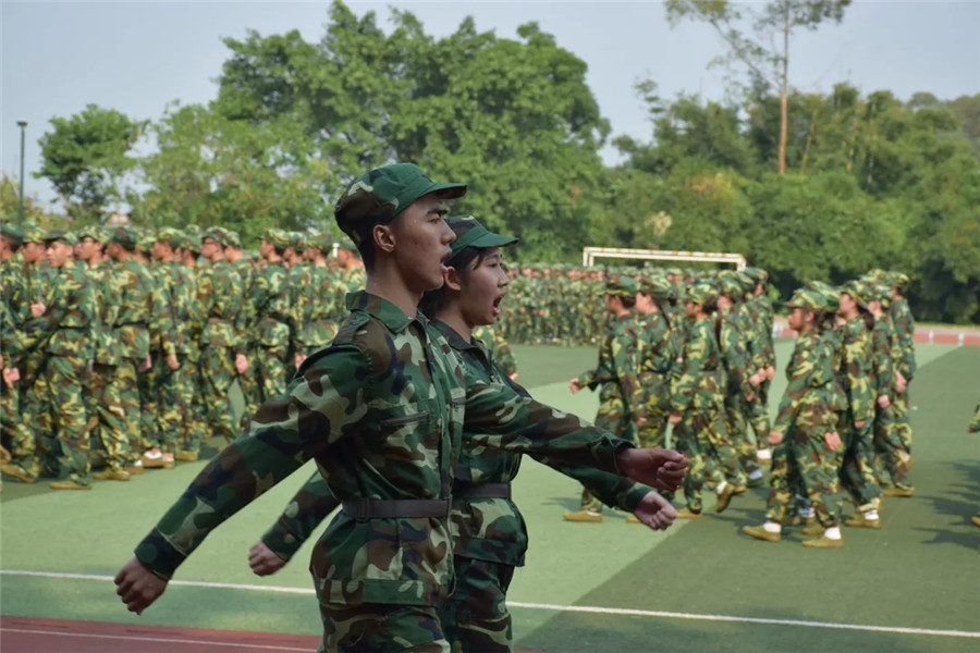 我院新生历经军训的锤炼摔打洗礼过后,新生们展现出了更加昂扬和坚定的精神面貌。在检阅场地上集合整理队伍的声音中,军训汇演暨总结表彰大会也随之开始。奏唱国歌、迎校旗是每一个学子对于国家对于学校一个尊敬。随后就是期待已久的军训汇报表演。第一项是各方阵队列考核分列式汇报表演,整齐的步伐,短促有力的口号,整齐划一地完成一个个规定动作,在运动场上挥洒汗水;第二项女子匕首操,表演连队两边进场,动作快速,气势雄壮;第三项男子拳术擒敌拳方阵,向我们展示了军训以来的成果,让我们感受到了飒爽英姿,铮铮铁骨的男子气概;第四项女生拳术也不甘示弱,矫健的身手,整齐利落的招式,向我们展示了广商也有巾帼风采,深刻的诠释了“巾帼不让须眉”的精神。最后是战术演练队,一轮精彩绝伦的战术表演,一招一式,展显战术连队的别样风采,特种作战技巧,坦克战车战术配合让全场观众大开眼界,整个田径场上充斥着青春与活力,向我们展示新一代青年蓬勃的生命力。我院2018级新生参与了每一项战术队列表演,出色地完成了各项任务。