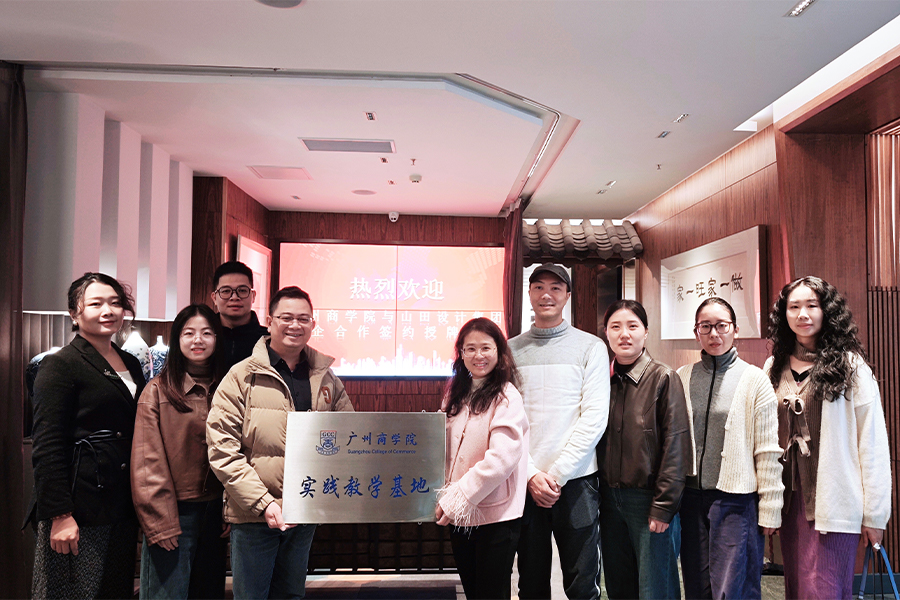 12月30日,广州商学院艺术设计学院环境设计专业负责人龙莉红、环境设计教研室主任周子豪、以及环境设计专业骨干教师黄婵媛,及专业教师黄海添,刘欣,萧卓尔,陈南真,董文娇一行人与山田(广州)企业管理集团有限公司开展校企合作深度交流,并举行挂牌仪式。