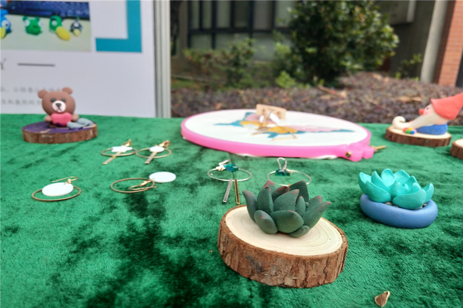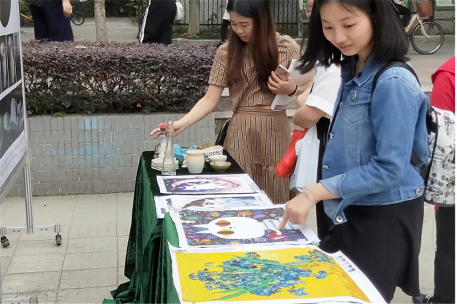 4月18-20日,艺术设计学院2018年上半年个性发展课程作品展在艺术设计楼广场举行,展出上学期的课程教学成果。此次展览共设置两个展区,展出包括13个课程在内的152件作品,其中有陶艺制作与赏析、钻石画、手工扎染、手工制作包、黏土教学等课程,分别展出20件陶瓷、22件手工制作包、15件手工扎染包、40件创意首饰、20件黏土手艺、15个犀牛建模作品、10个魔术作品等。3天展览期间吸引了学校数百名师生前来观看。