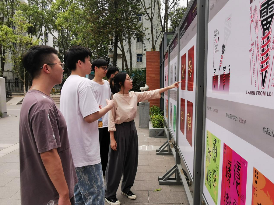 4月21日上午,在广州商学院艺术设计学院艺术楼广场开展了《字体设计》课程教学成果展。艺术设计学院院长林钰源,艺术设计学院书记董志康,视觉传达设计专业负责人钟国燕,视觉传达设计教研室主任李斯,《字体设计》课程组团队成员——王丹、周丽东、陈凯喆、李莉、黄金梅等视觉传达设计专业教师共同出席了本次展览,课程组负责人熊瑛子作为本次开幕式的主持人。