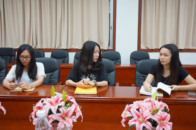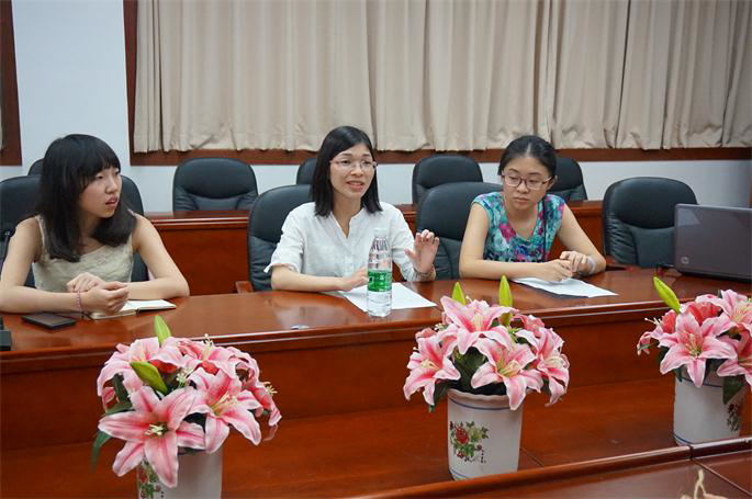 陈珊(中)在认真听取师妹的提问