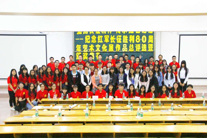 11月18日,学习会艺术设计学院分会在教学楼A107室举办了“弘扬长征精神,传承红色记忆”——纪念红军长征胜利80周年艺术文化展作品总评选暨颁奖典礼活动。出席本次活动的嘉宾和评委有学习会会计学院分会指导老师蓝乐钿,艺术设计学院2013级辅导员黄荣美,学习会艺术设计学院分会指导老师蒲艳,以及学习会各学院分会理事会干部。