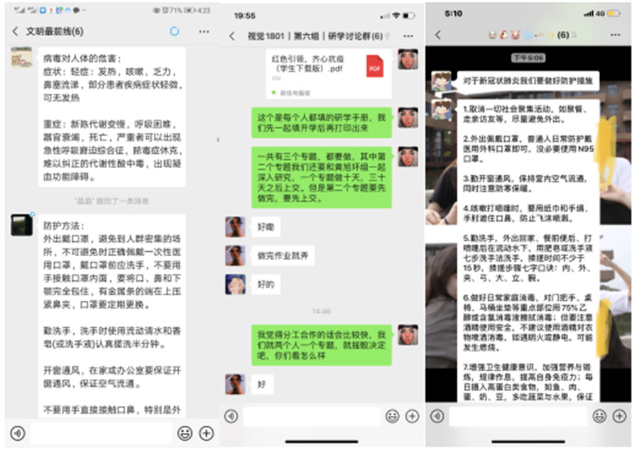 辅导员关树基:在研学过程,能感受到我们师生团队的高效和默契,在尝试研究“主播”工作模式,尝试写美篇的过程中自己受到不少网络思政启发,同时看到学生在研学过程中不断给自己带来惊喜,真的感到十分欣慰。希望同学们能继续把研学的热情用在其他网络课程的学习,用实际行动支持打赢疫情防控阻击战。