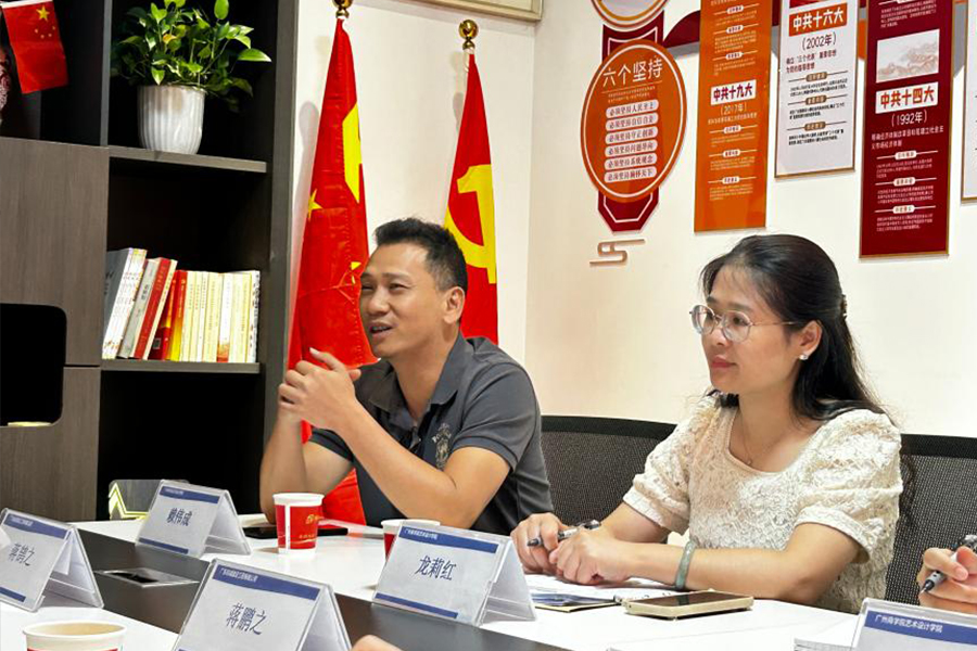为深化校企合作,拓展实践教学平台,进一步推动人才培养与行业需求的有效对接,5月13日,广州商学院艺术设计学院副院长赖伟成带队走访广东柏诚建设工程有限公司开展交流调研并举行实践教学基地挂牌仪式。学院校企合作专员张流畅、环境设计专业负责人龙莉红、环境设计教研室主任周子豪、教学督导黄婵媛及专任教师代表参加此次活动。