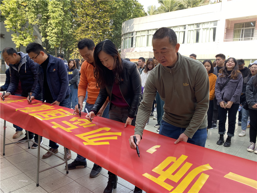 教育活动上,姚安贤代表艺术设计学院宣读党总支和学院团委联合撰写的《前事不忘,后事之师,勿忘国耻,牢记使命,奋发图强,爱我中国!》倡议书。同时举行了默哀仪式,横幅签名仪式。