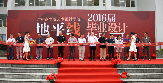 5月9日,我校艺术设计学院2016届毕业设计作品展“地平线”在图书馆广场正式开幕。学校校长杨文轩,校党委书记谭马利,副校长刘根正、高惊生,校长助理兼教务处处长贺浪萍莅临开幕式现场。同时,开幕式还邀请了广州大学松田学院校长卢小根、华南师范大学美术学院院长方少华、广州美术学院教育学院院长刘三健等院校领导以及广州巴国广告有限公司总经理姚建国与一创陶瓷灯饰有限公司总经理邢顺福等企业领导作为本次开幕式嘉宾。本次活动由艺术设计学院党总支书记欧莹主持。