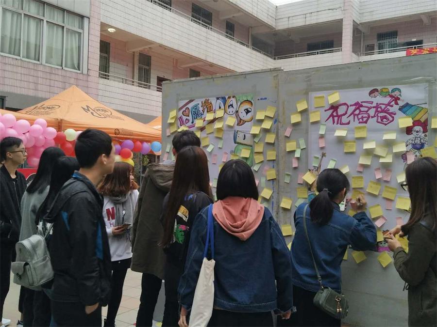 在趣味游园过程中,活动伊始,在艺术团歌唱队的带动下,现场的气氛很快活跃起来,吸引不少行人纷纷参与到活动。本次活动采用班级承办的方式,各班提出趣味摊位方案,由学生会审核筛选,最终评选出14个具有艺术设计专业特色的活动,包括有:经典网络游戏《你猜我画》,有蒙脸贴小丑的《丑脸贴》,有浪漫的拥抱爆气球的《告白气球》等。女生节祝福墙,写满了男生对女生的祝福,女生们在也在愿望墙上写下了自己的新年愿望。同学们在游园的活动中,感受着节日的欢乐气氛,游园活动现场吸引了许多同学来游玩,直至主办方宣布结束,同学们才依依不舍离开。