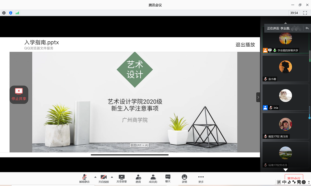 为了做好新生开学的准备工作,8月26日晚上,在艺术楼105及腾讯会议上开展了线上、线下同时进行的艺术设计学院2020级助理辅导员第二次培训。参加本次会议的成员有艺术设计学院2020级辅导员蓝喜、李业嘉及11位2020级助理辅导员。