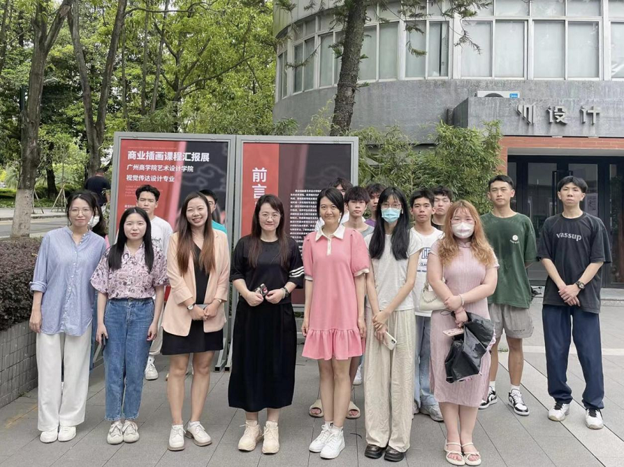 6月25日上午,在艺术楼广场开展了《商业插画》课程成果汇报展。艺术设计学院视觉教研室专业带头人钟国燕,教研室主任李斯,课程展览负责人洪宝以及视觉设计专业教师共同出席了本次展览,展览顺利开幕。