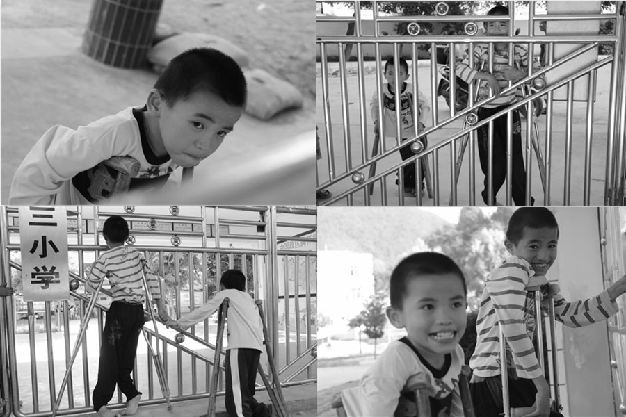 在昨天的趣味运动会中,队员们发现了在校门外观赛的两名残疾兄弟,他们拄着拐杖、行动不便的双腿和笑意盈盈的脸庞深深地吸引了我们的注意。经过交谈,我们了解到兄弟俩都是龙村镇第三小学的学生,哥哥叫温思杰,弟弟叫温木青,家里离学校不远,但因为身体原因行走起来十分费力,所以没有报名参加我们暑假夏令营;但因为近几日感受到校园热闹的气氛忍不住过来一探究竟。