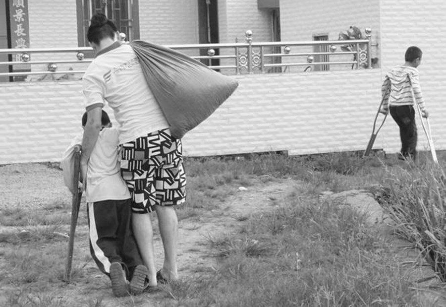服务队向校长咨询了兄弟俩的家庭情况,并决定联系家长于当晚进行家访。晚上约20:00左右,慰问组队员们到达了兄弟俩的家;他们的家庭住房与邻里相比显得矮小与简陋,室内都是裸露的砖墙和几件破旧的家具,家里共有六口人,其中三人患有残疾。在这个家庭构成中,父亲今年57岁,是家里唯一的劳动力;母亲患有重度残疾,只能坐在轮椅上,双腿不受控制,常会自动不停晃动;老奶奶已经87岁高龄;两个儿子因为先天残疾,双腿无力,需要拐杖支撑才能行走;小姐姐即将读初三,是一个非常懂事的女孩。