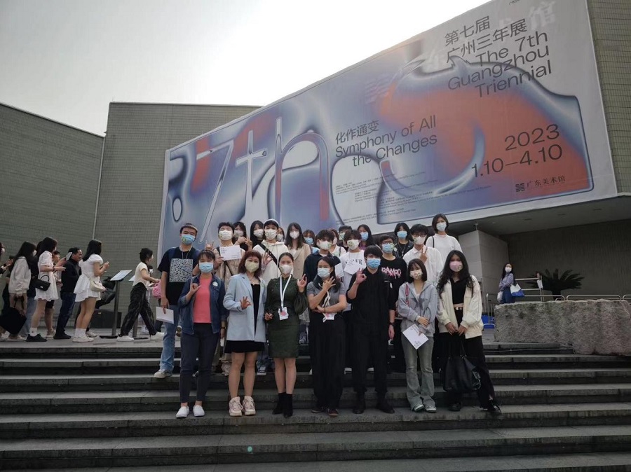 继先导课之后,在3月11日上午,艺术设计学院综合材料工作室开展了“融汇贯通”工作坊系列活动的实践课部分。实践课由公共艺术专业李安娜副教授、何天一博士组织,带领学生前往广东美术馆参观“第七届广州三年展”。实践课包括观展体验和记录、分享、创作两个环节。课程的实施得到了广东美术馆公共教育部的支持。