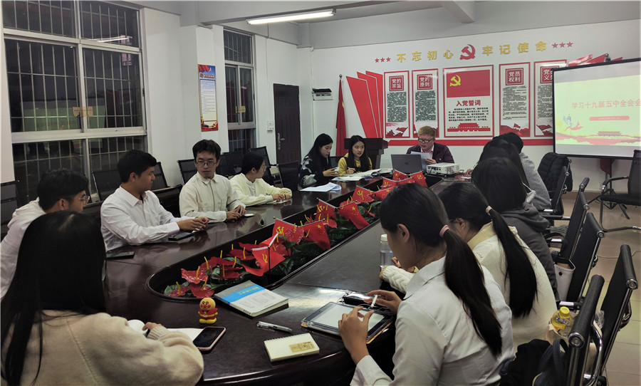 12月16日晚,2018级学生党支部在艺术楼105党员活动室开展党的十九届五中全会专题学习会。会议由党支部书记关树基组织,全体学生党员参加会议。