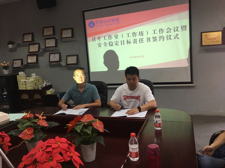 会议最后,林钰源与工作室(工作坊)负责人郑重签署了新学年《安全工作责任书》。此次会议,体现了艺术设计学院对工作室(工作坊)安全工作的重视,进一步推进了我院工作室(工作坊)规范管理工作制度化、规范化和科学化进程,让教职工充分认识到学校安全工作的重要性、紧迫性,切实维护师生生命安全和身体健康。
